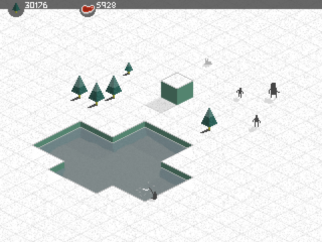 Since my childhood have always loved the god games from Bullfrog, such at theme park and dungeon keeper. I have always wanted to make a god/simulation game involving a small group of people trying to gather resources to survive the natural elements. I made a mockup of what a game of this sort may look like visually. The little people could collect food by hunting and fishing, as well as collecting lumber for fires and for making cabins to shelter from the cold.
